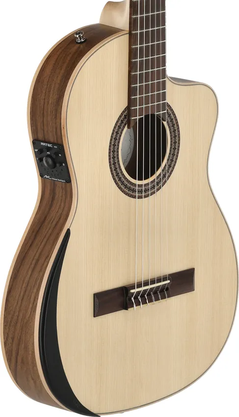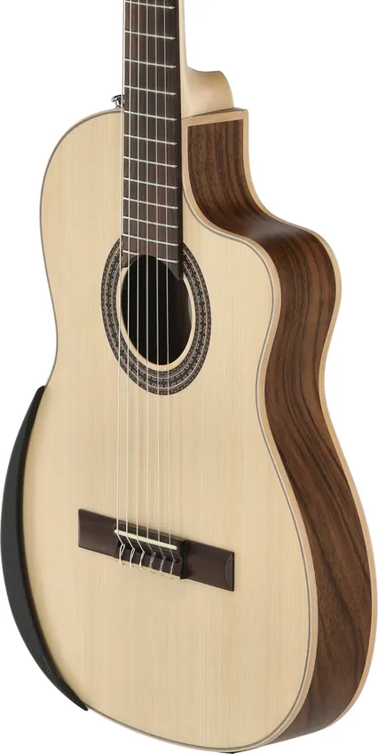 Gitara elektroklasyczna Manuel Rodríguez ECOLOGÍA Series Samba to wyjątkowy instrument, który łączy w sobie tradycję europejskiego rzemiosła z nowoczesnym podejściem do ekologii. Instrument ten jest wykonany wyłącznie z europejskich gatunków drewna, takich jak świerk, orzech, klon i akacja, co czyni go przyjaznym dla środowiska.