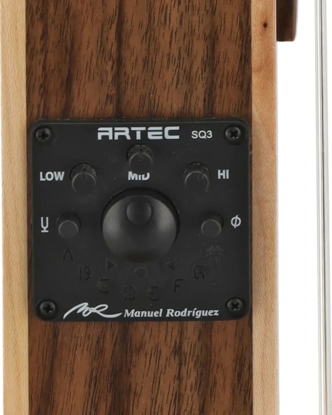 Gitara Manuel Rodríguez ECOLOGÍA Series Samba wyposażona jest w zaawansowany system elektroniczny Manuel Rodríguez by ARTEC SQ-3. System ten zawiera 3-pasmowy przedwzmacniacz EQ z przetwornikiem mostkowym Solidflex, który łączy zalety elastycznych przetworników kablowych z mocą sztywnych piezos.