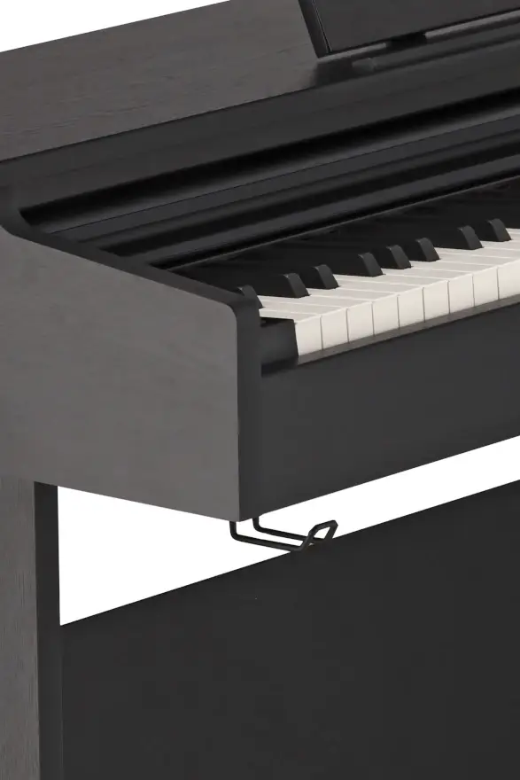 - Tradycyjna obudowa pianina: Klasyczny design pasujący do każdego wnętrza, dostępny w wykończeniu matowym czarnym.