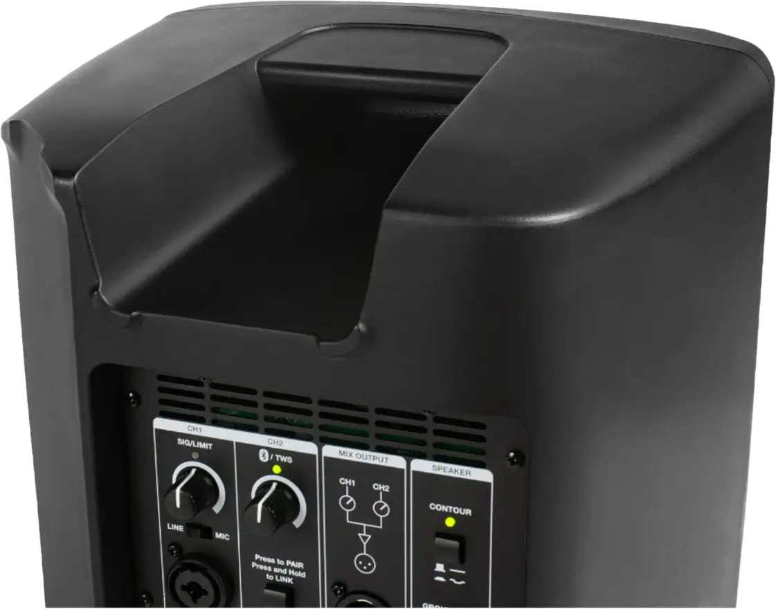 Zintegrowany, dwukanałowy mikser umożliwia szybkie podłączenie mikrofonów, instrumentów i źródeł liniowych dzięki wejściu combo XLR/TRS. Do dyspozycji jest także wyjście XLR do łączenia kolejnych kolumn w systemie. Każdy kanał posiada niezależną regulację głośności, co ułatwia zbalansowanie poziomów bez dodatkowego miksera.