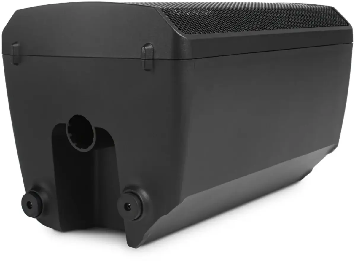 Obudowa z wytrzymałego polipropylenu oraz solidna metalowa kratka zapewniają trwałość w wymagających warunkach pracy. Wygodny uchwyt transportowy oraz przemyślana ergonomiczna konstrukcja ułatwiają przenoszenie i szybki montaż. Standardowe gniazdo 36 mm pozwala na montaż na statywie, a profil obudowy umożliwia użycie jako monitora scenicznego.