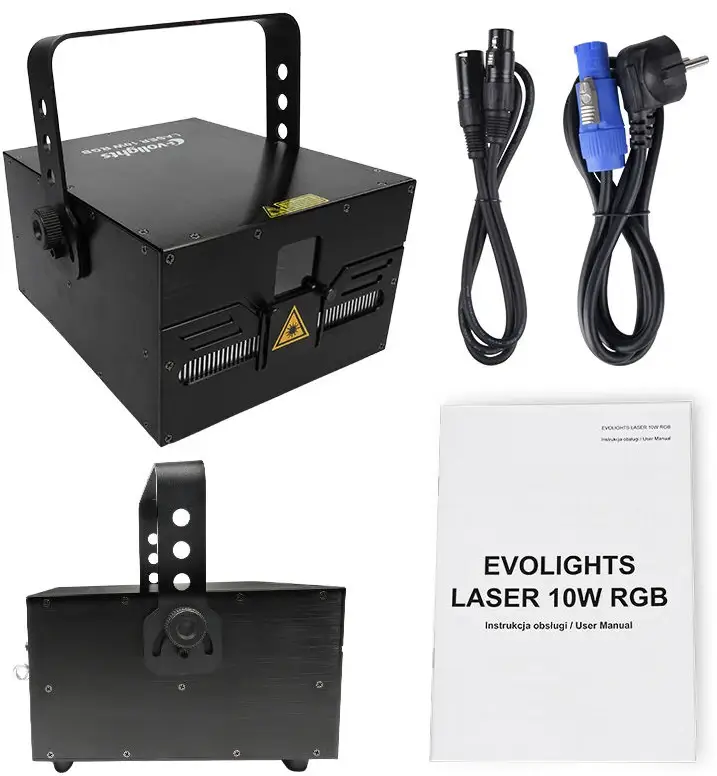 EVOLIGHTS LASER 10W RGB to bez wątpienia profesjonalne oświetlenie sceniczne. Marka Evolights przygotowała urządzenie, które znakomicie sprawdza się na wszelkiego typu scenach, jako laser disco w klubach i dyskotekach podczas imprez prowadzonych przez DJ-ów, a także oświetlenie efektowe w czasie pokazów, występów i różnego rodzaju wydarzeń.