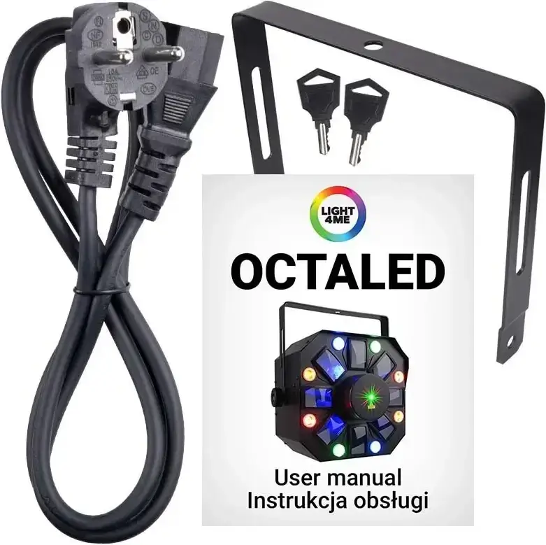Light4Me OCTALED to multiefekt, który posiada możliwości tworzenia wielu kombinacji świetlnych bez potrzeby używania innych urządzeń. Jest to możliwe dzięki trzem różnym źródłom światła: białym lampom stroboskopowym, kolorowym diodom LED pracującym w standardzie RGBWA oraz dwóm laserom w kolorze czerwonym i zielonym. Dzięki tak zróżnicowanej palecie oświetlenia nigdy nie zabraknie Ci pomysłów na nową oprawę kolejnych imprez.